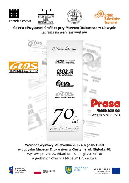 Muzeum Drukarstwa w Cieszynie zaprasza na wystawę "70 lat Głosu Ziemi Cieszyńskiej. Historia, która trwa", która odbędzie się w dniach 21 styczeń - 15 luty 2026 r.