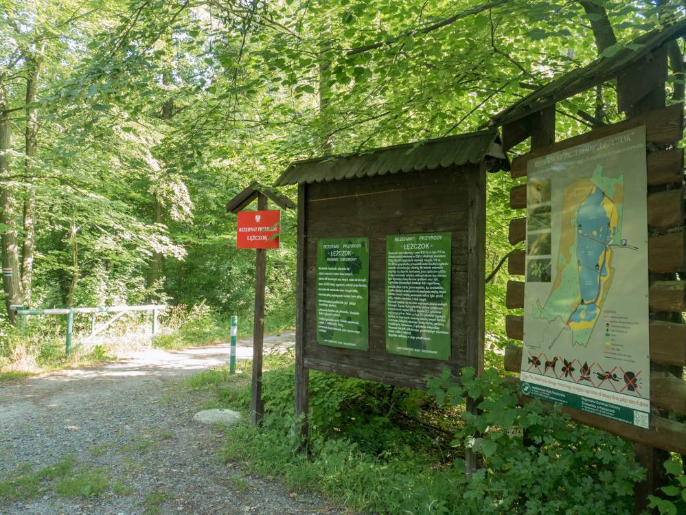 Rezerwat przyrody „Łężczok” znajduje się na terenie Parku Krajobrazowego „Cysterskie Kompozycje Krajobrazowe Rud Wielkich”. Rezerwat tworzy 8 stawów, które już w XIII wieku służyły do hodowli ryb, a także lasy z imponującymi bukami, lipami oraz dębami szypułkowymi, mającymi nawet 400 lat. Najbardziej znany jest Dąb Sobieskiego, będący pomnikiem przyrody. To olbrzymie drzewo znajduje się bezpośrednio przy szlaku, podobnie jak pałacyk myśliwski wybudowany w 1783 roku przez cystersów rudzkich. Niestety obecnie jest grożącą zawaleniem ruiną.